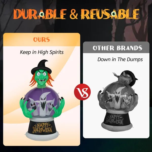 5.9ft Witch & Crystal Ball Inflatable Halloween Decoration